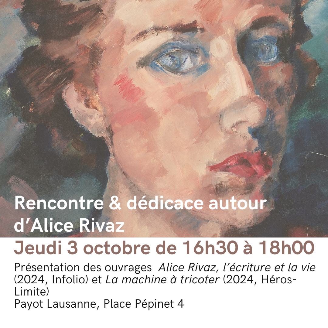 Présentation des ouvrages Alice Rivaz, l’écriture et la vie (2024, Infolio) et La machine à tricoter (2024, Héros-Limite) en présence de Marianne Dyens, Jacob Lachat et Valérie Cossy.