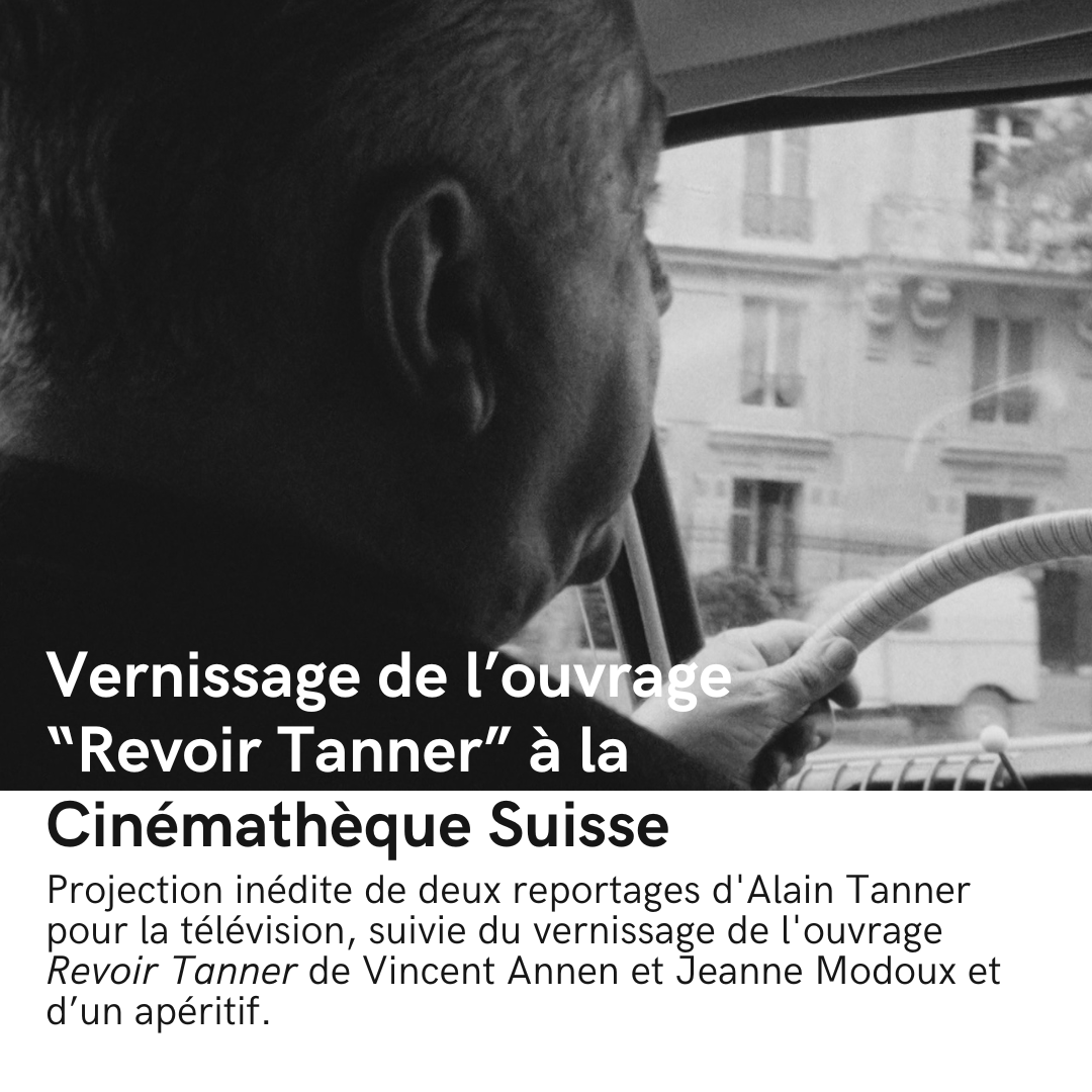 La projection inédite, en version restaurée, de deux reportages pour la télévision de Tanner sera suivie, dès 20h, d’une présentation du livre et d’un apéritif offert par le Centre d’études cinématographiques (CEC), en présence de l’auteur et l’autrice, ainsi que du directeur du projet de recherche et préfacier de l’ouvrage, Alain Boillat.
