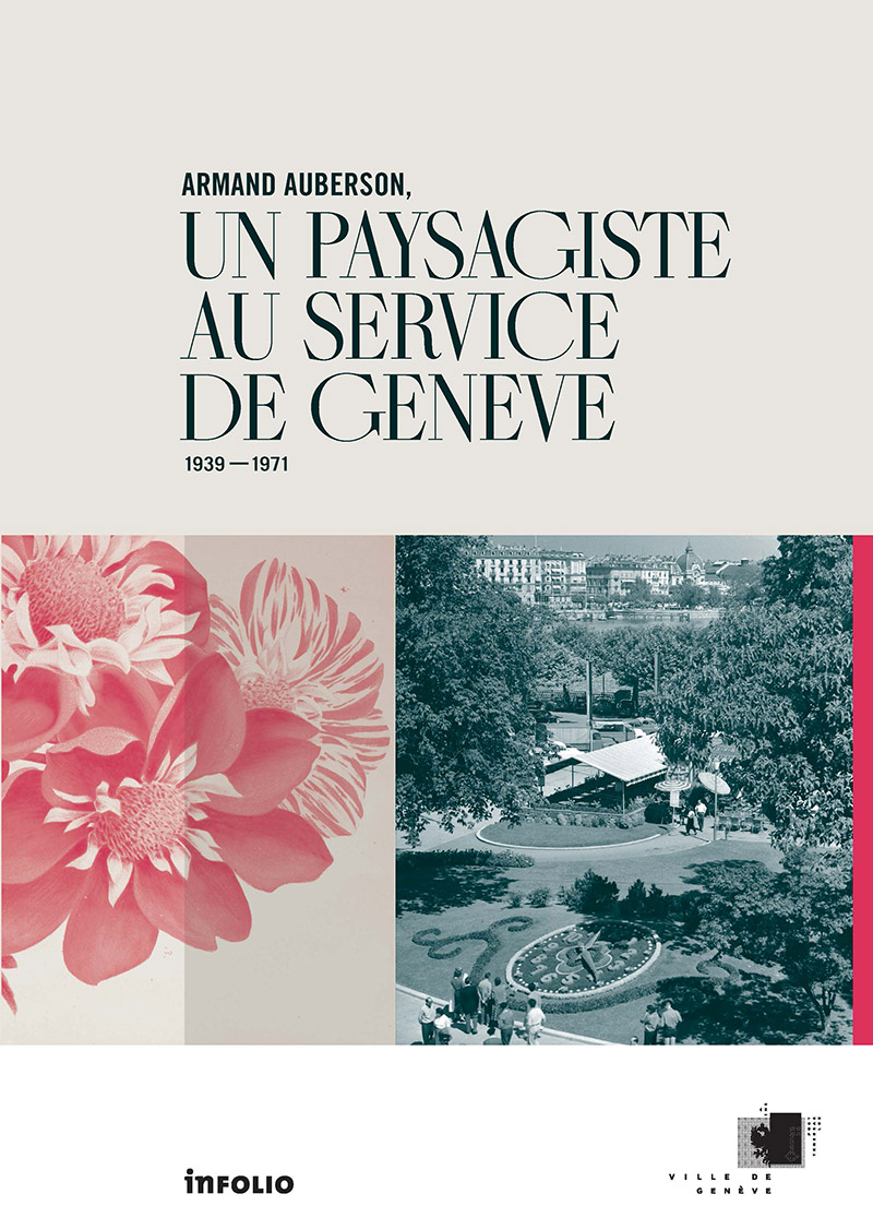 Armand Auberson (1909-1998) a œuvré au Service des parcs et promenades de la Ville de Genève durant plus de trois décennies, gravissant les échelons jusqu’à en assumer la direction. Depuis sa formation d’horticulteur dans les années 1920 à la modernité des années 1960, il a dû composer durant sa longue carrière avec des événements majeurs tels que la Seconde Guerre mondiale, une évolution significative des modes de vivre en ville et la constitution d’une profession, celle des architectes paysagistes. Acteur incontournable des jardins genevois, il va marquer la ville d’une empreinte aisément identifiable, issue d’un goût pour des tracés réguliers, épurés, et une passion pour la couleur et les fleurs, notamment la rose. Au-delà des projets de l’architecte paysagiste, les nombreuses illustrations révèlent le paysage genevois et l’esthétique des années 1940 à 1960. Si la plu- part de ses réalisations ont été modifiées ou remplacées, certains projets restent aujourd’hui connus et appréciés des habitants, comme la série de pataugeoires. Auberson a aussi doté Genève d’aménagements dont la renommée a largement dépassé les frontières de la Suisse : l’horloge fleurie est toujours un des lieux les plus photographiés et la roseraie du parc La Grange, associée au Concours international de roses nouvelles créé par Auberson, a contribué au rayonnement de Genève et de son savoir- faire horticole.