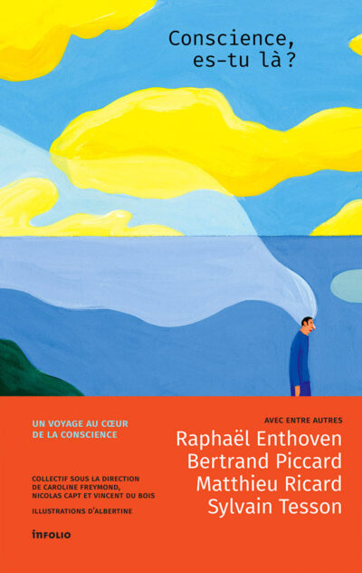 Omniprésente, la conscience n’en demeure pas moins insondable. Fuyante, elle ne se dévoile qu’à l’occasion de ses évanescentes apparitions. Réunis autour de la table spirite, les auteurs de « Conscience, es-tu là ? » frappent chacun trois coups dans le grand vide de la nuit. Conscience de soi, de l’autre, de la défense de la nature, du savoir-faire ou encore des pulsions, les voix se font multiples et s’expriment par le texte, l’image et la sculpture. Réunissant des artistes et penseurs de notre temps allant de John Armleder à Sylvain Tesson et d’Albertine à Tristane Banon en passant par Matthieu Ricard, Lolvé Tillmanns, Raphaël Enthoven et Bertrand Piccard, l’ouvrage ouvre grand les portes du mystère de l’âme.