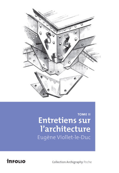 Les Entretiens sur l’architecture ont été publiés en 1863. Viollet-le-Duc y concentre, plus que dans le Dictionnaire, l’essentiel de son expérience et de sa pensée. L’architecture n’est pas la seule affaire des architectes, c’est l’affaire de tous : elle naît et se développe dans et avec les sociétés où elle s’incarne. Elle exprime et elle reflète, plus qu’elle n’est le produit d’une science et de techniques. Elle est un métier et un art, une discipline et un style. C’est précisément ce que Viollet-le-Duc rend sensible de manière concrète et vivante, dans un livre qui reste un modèle et un outil de référence.