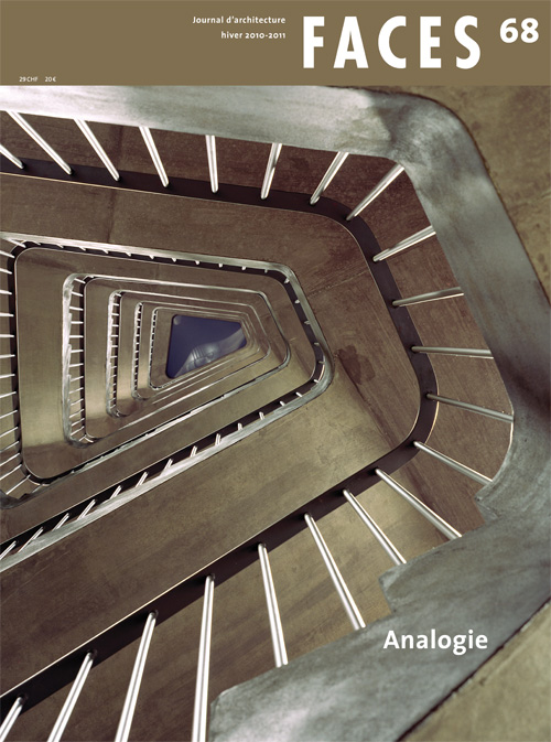 Dossier analogie • Edito : Refigurer le monde • Cette obscure clarté de l’analogie • Transfert. Analogie et littéralité • Ressemblance, dissemblance. Le matériau à l’épreuve de son image - Tessin, Grisons : entre singularités et analogies ? • Un théâtre silencieux. Photos de J. Langenegger Lachance au Montreux-National