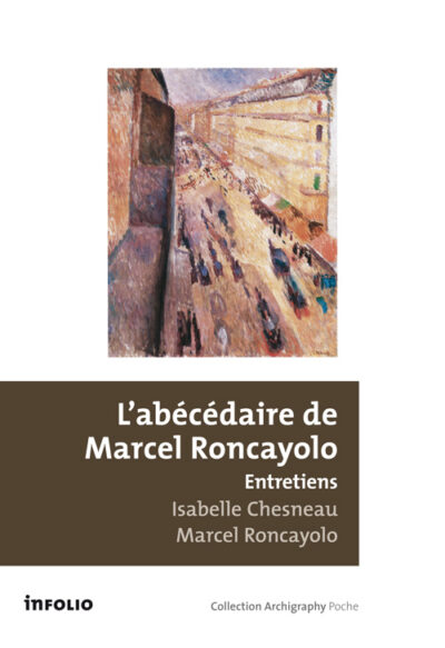 L’abécédaire de Marcel Roncayolo est le résultat d’une série d’entretiens entre Isabelle Chesneau et Marcel Roncayolo. L’interviewer a proposé à l’interviewé une série de thèmes présentés dans l’ordre alphabétique, meilleur moyen de présenter une pensée sans en faire un système. L’ouvrage pose la question des choix méthodologiques et conceptuels de Roncayolo, et celle de la validité de leur transfert d’une discipline à l’autre. En d’autres termes, il s’agit d’une réflexion sur les conditions de constitution et d’exercice d’une pensée sur la ville – de ce point de vue, le caractère intergénérationnel du dialogue n’est pas que de pure forme.