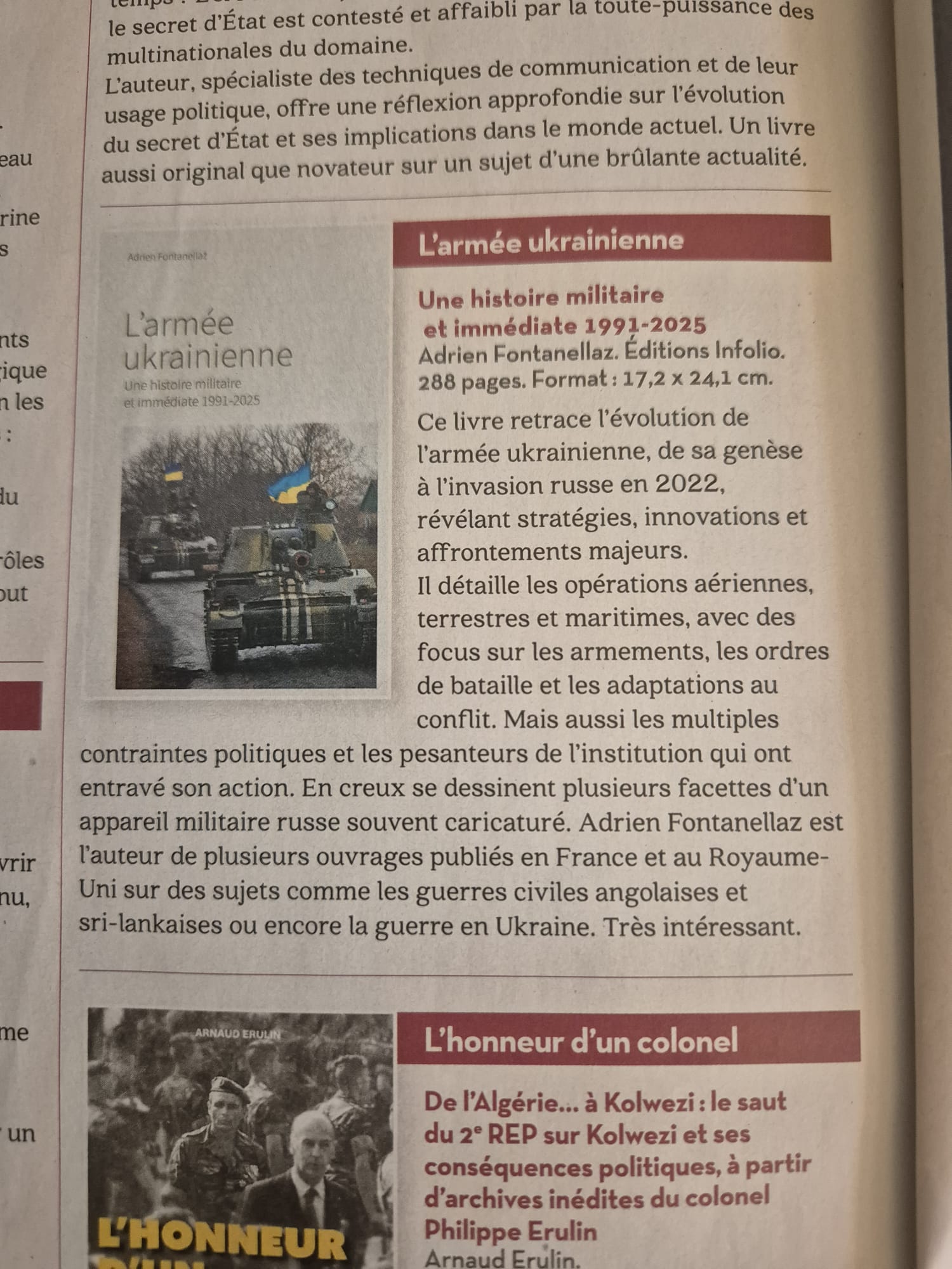 Une armée en guerre, Magazine Livre Suisse 9, p. 37, mars 2025.
