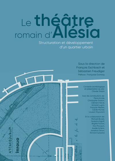 Le théâtre antique d’Alésia a fait l’objet de nombreuses investigations depuis sa découverte en 1905. Cette publication synthétise l’ensemble des connaissances acquises sur ce monument, notamment à l’occasion des dernières campagnes de fouille menées entre 2004 et 2008 dans le cadre d’un important programme de recherche, préalablement au projet de restauration qui doit le couronner. Elle a pour ambition de restituer les différentes phases d’aménagement du site qui est intimement lié au développement urbanistique de la ville romaine sur l’oppidum au lendemain de son célèbre siège. Cette monographie se nourrit des trois axes de recherche principaux qui ont guidé les investigations : définir la nature des occupations antérieures au théâtre, caractériser les étapes de l’histoire du monument et préciser les modalités de son insertion dans le tissu de l’agglomération. Elle présente ainsi l’histoire mouvementée de l’édifice, érigé sur une grande parcelle de friche urbaine au coeur de la ville antique. L’étude du substrat local a montré que son hétérogénéité a directement conditionné les différentes phases de son occupation, notamment la destruction du premier théâtre causée par la présence d’une faille sous-jacente. L’étude architecturale du monument qui a mis en évidence ce désastre est par ailleurs étoffée d’une proposition de restitution de ses deux principaux états.