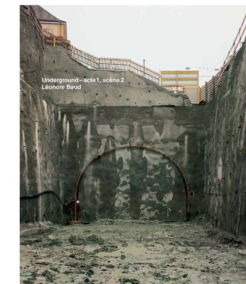 De mars 2004 à septembre 2008, une dizaine de chantiers d’envergure ont profondément bouleversé Lausanne, du centre à la périphérie. Pendant les quatre ans qu’a duré le percement du nouveau métro, Léonore Baud a eu un accès permanent aux sites de cette entreprise colossale. Dans ses photographies de grand format, elle cherche à capter des scènes anodines et éphémères, à saisir par bribes la perpétuelle évolution d’un chantier et s’approprier ainsi un pan de la réalité. Sa démarche est plus artistique que documentaire, l’enjeu de ce travail étant que l’image acquière une esthétique et une logique propre, que le monde auquel elle donne accès n’est ni complètement détaché du réel, ni pour autant identifiable à celui-ci. Ce qui se trouve immédiatement questionné, c’est la fidélité apparente de l’image à la réalité : tel qu’il est révélé, ce grand chantier se situe à la limite de l’imaginaire et de la fiction.